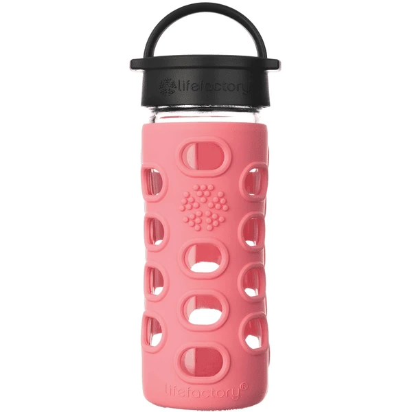 Lifefactory Glasflaschen. In den Flaschen lassen sich Wasser, Eistee, Milch und